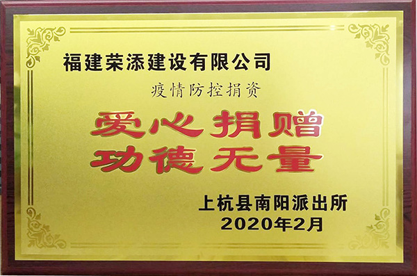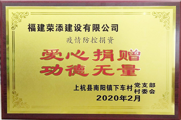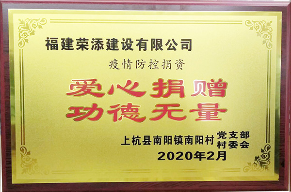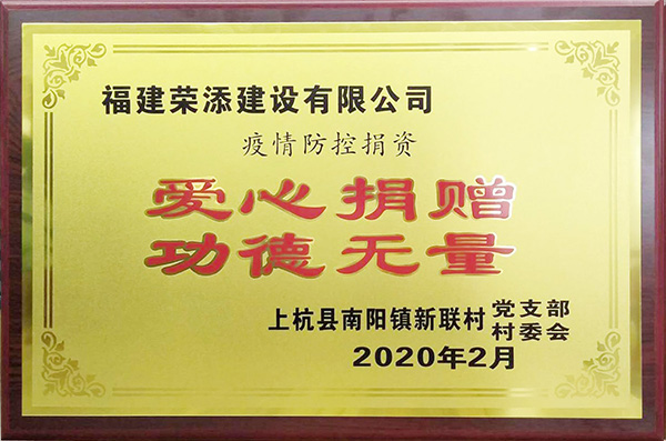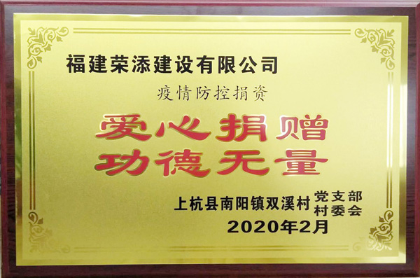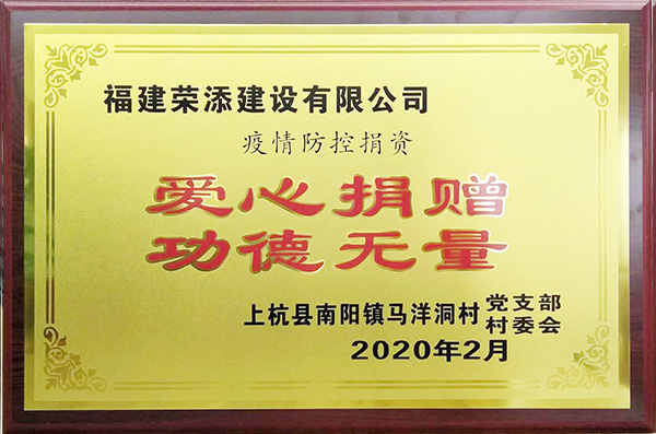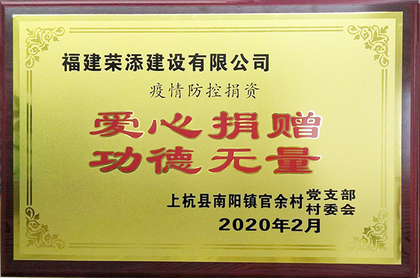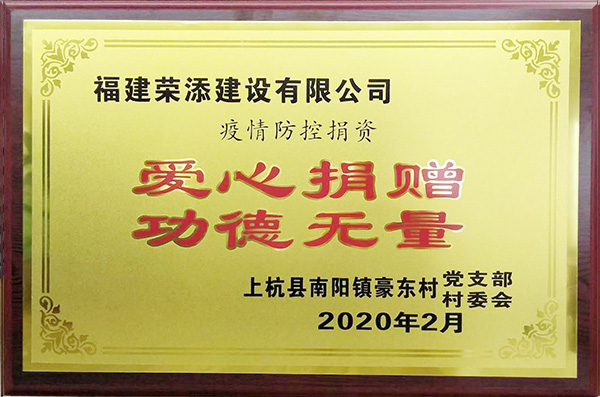荣添建设有限公司 2020年疫情防控捐资